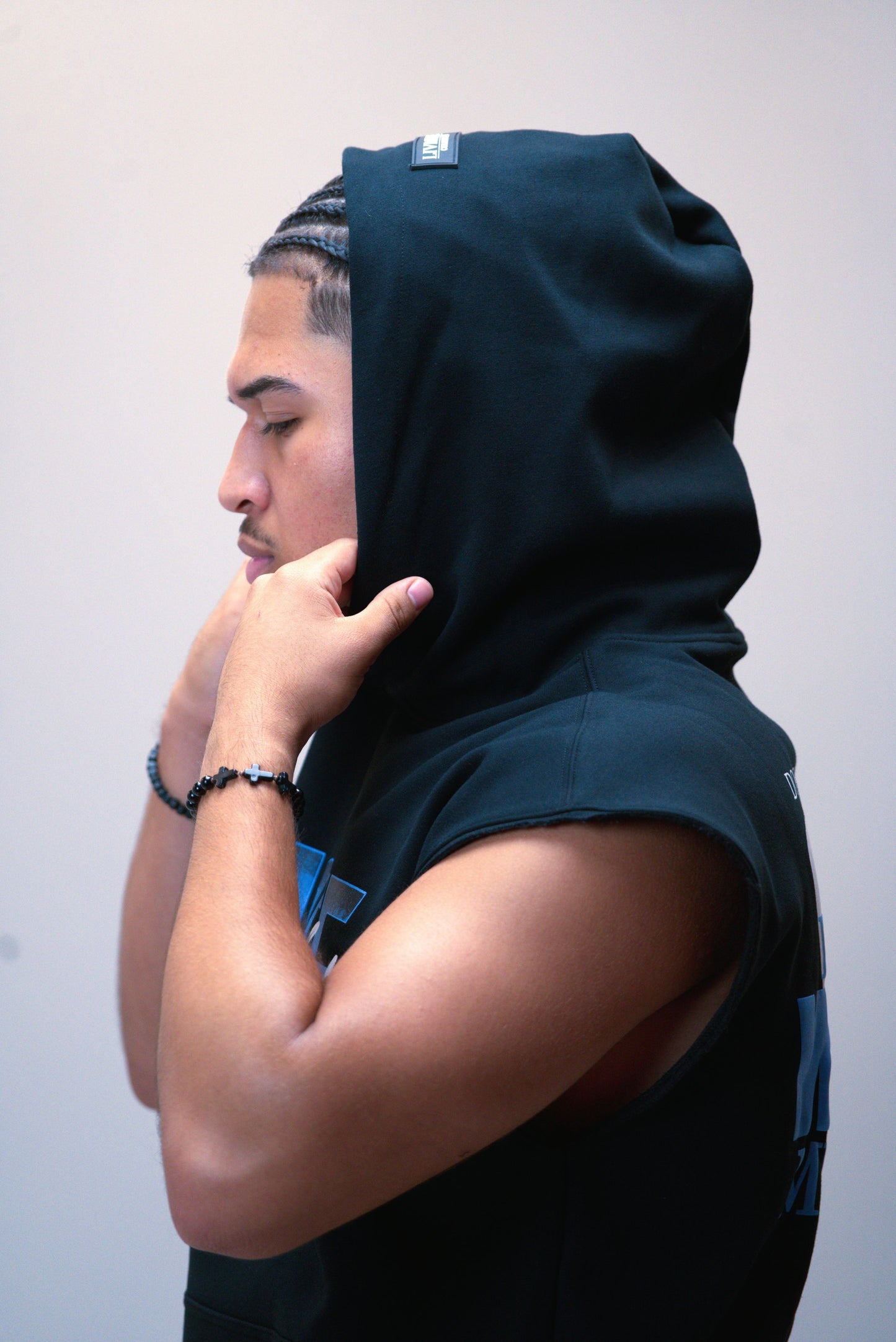 'The Tusks' Cut Off Hoodie - Black/ Blue
